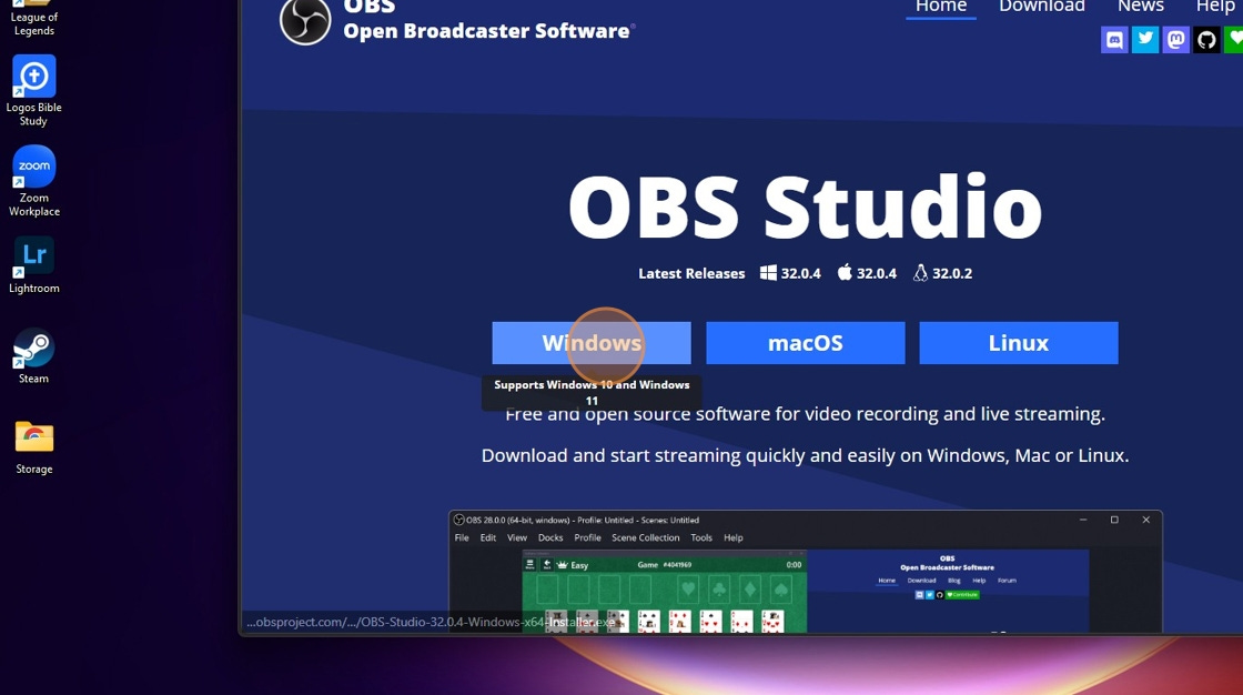 Click “Windows.” As mentioned, this guide will focus on the Windows version of OBS Studio, not the macOS version.
