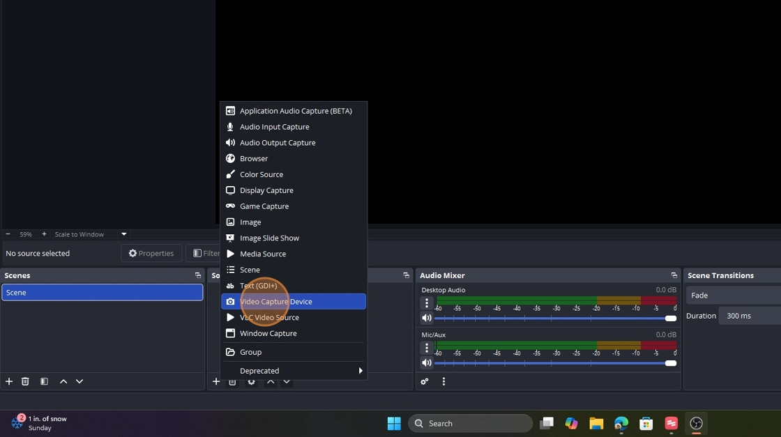 In the pop-up menu, locate and click the “Video Capture Device” option.
