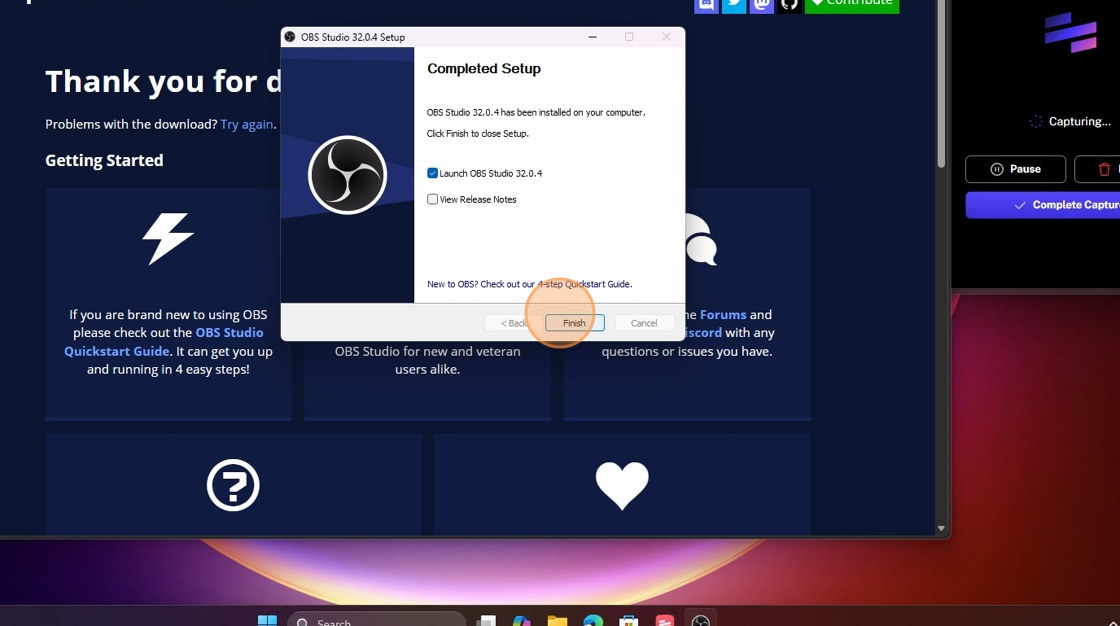 Run the installer from your Downloads folder or internet browser window and complete the steps as prompted. When you reach the end, click “Finish.”